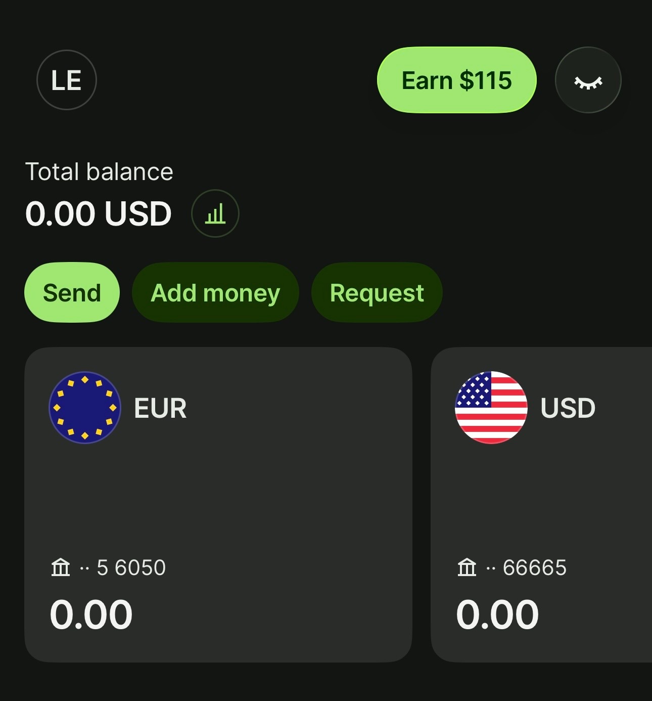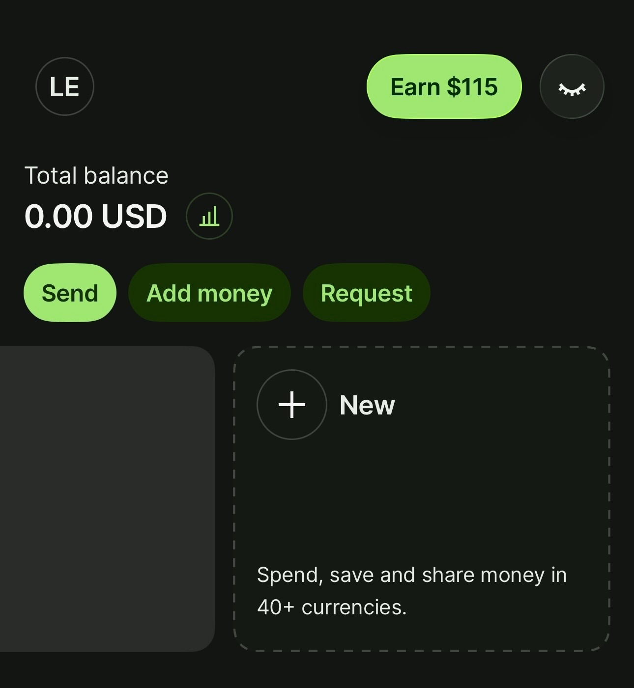 When you’re in the app, click on the “+ New” option. This allows you to create both a USD and an EUR balance within Wise. Think of these as holding accounts where your money sits until you decide what to do with it.