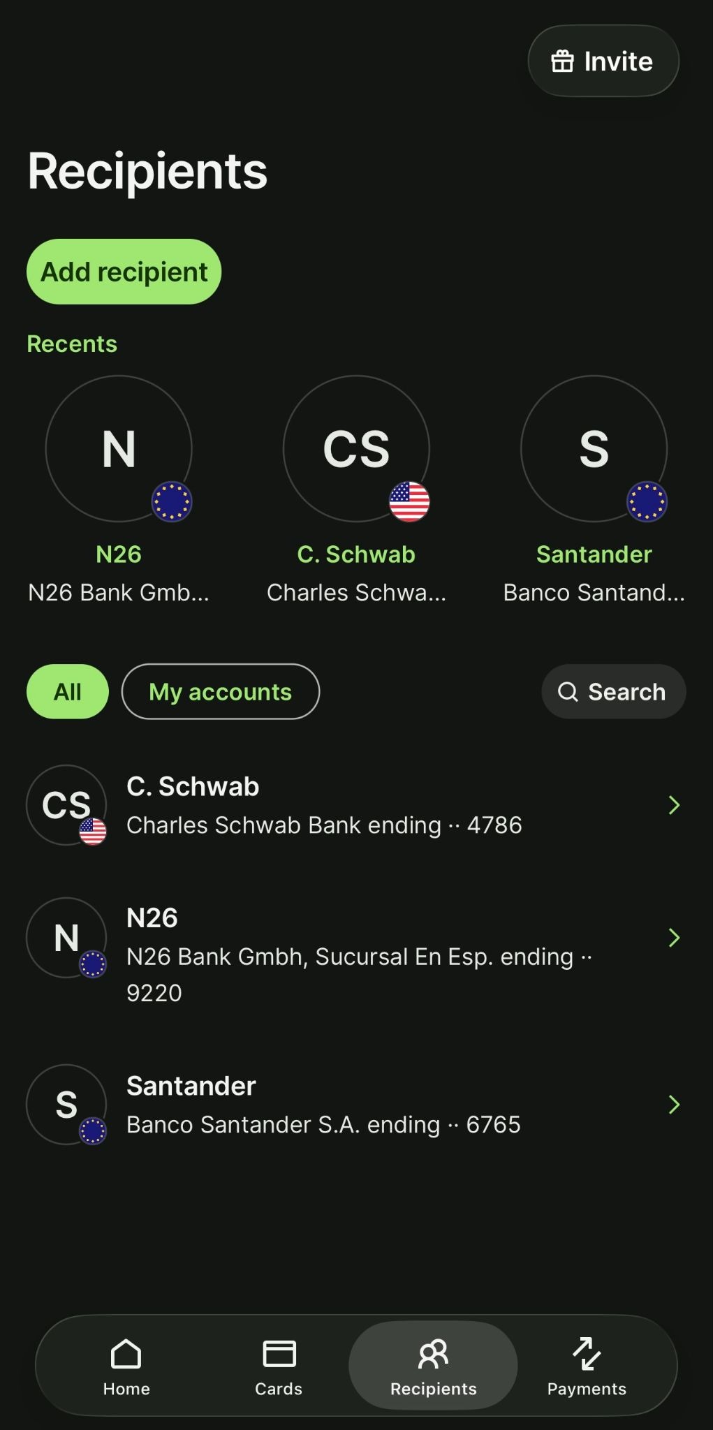 - You can link multiple bank accounts (so moving money between your own accounts—like your euro account and your U.S. account—is way easier).