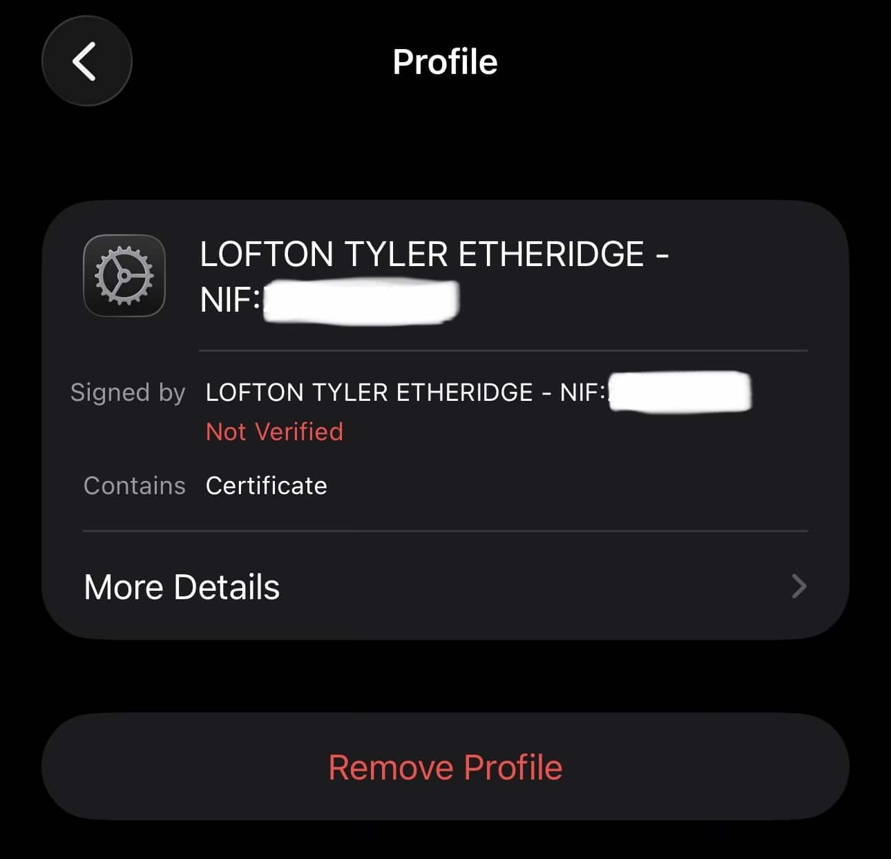 There’s one more thing worth mentioning, because this part confused me the first time I saw it. When I first downloaded my digital certificate onto my iPhone, Apple didn’t recognize it as valid. The certificate profile showed up as “Not Verified.” At first, I thought I had done something wrong or that the certificate hadn’t installed properly.