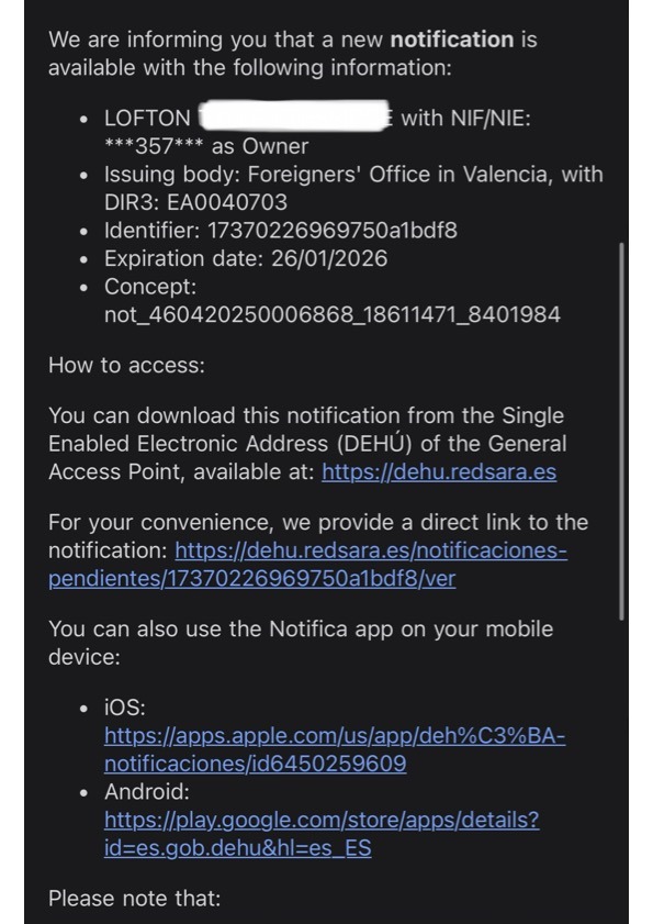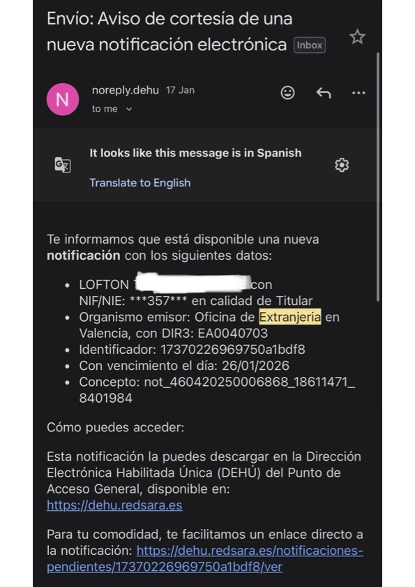 One thing that confused me at first was how Spain notifies you during the renewal process. You’ll constantly get emails and “updates”, but here’s the key: don’t panic until you get a new notification in DEHÚ.
