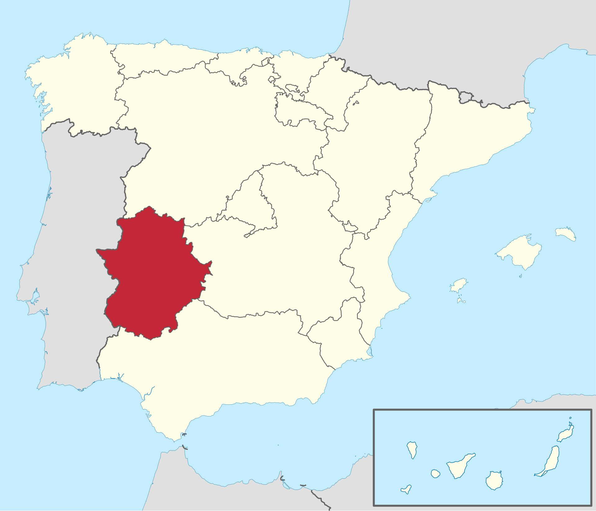 Major cities: Mérida, Cáceres, Badajoz