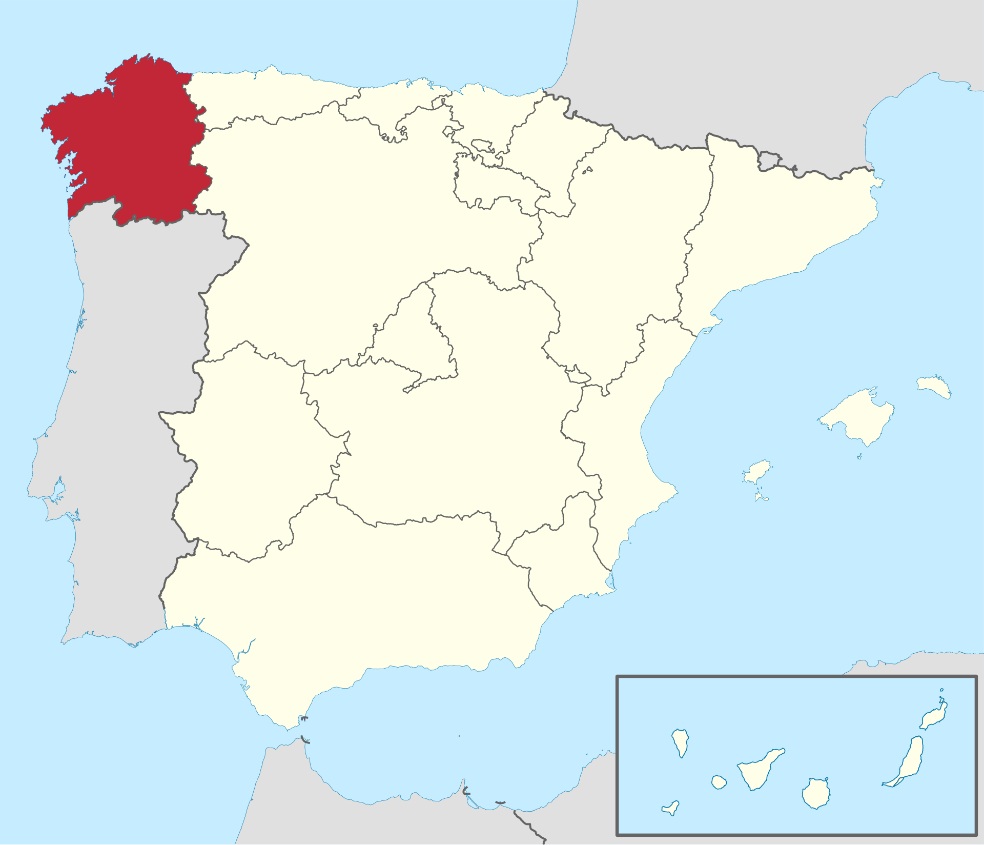 Major cities: Santiago de Compostela, A Coruña, Vigo, Lugo, Ourense