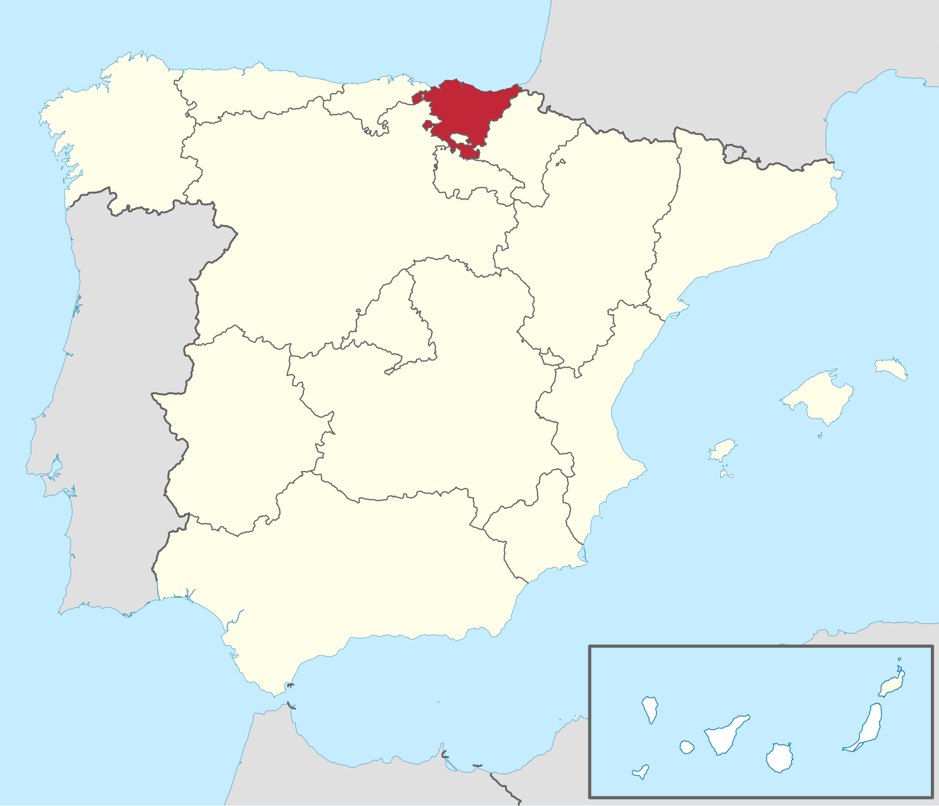 Major cities: Bilbao, San Sebastián, Vitoria-Gasteiz